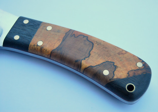 Na oprawie stabilizowany zagrzybiony klon i czarny dąb.
