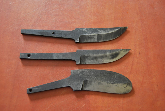 Moja wizja północnego zestawu - leuku - 17 cm ostrza i mniejsze pukko. Oba przekuwane z płaskownika. Na życzenie pozostawione ślady po kuciu młotkiem - tzw. brut de forge.