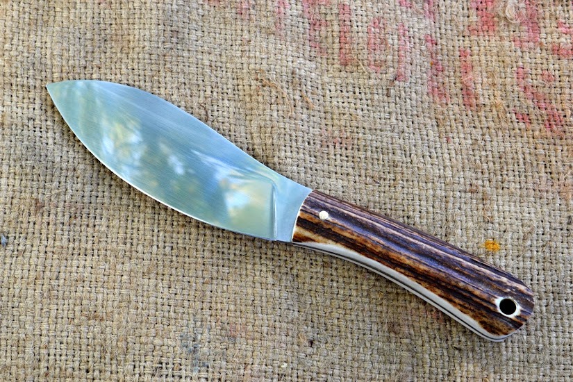 Nessmuk No. 19 lipca 03, 2014 Pobierz link Facebook X Pinterest E-mail Inne aplikacje Kilka dni przed pożarem warsztatu udało mi się skończyć kilka noży. Pojawią się w kolejnych postach. 4 mm 6150 57 hrc. Na okładziny użyłem poroża jelenia i mosiądzu. Pochewka szyta beżową plecioną Slam i woskowana. Nie barwiona. Komentarze