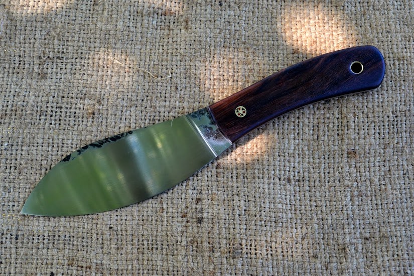 Nessmuk No. 20 lipca 03, 2014 Pobierz link Facebook X Pinterest E-mail Inne aplikacje 3 mm stali 50 hf/6150 zahartowanej na 57 hrc Na oprawie palisander sonokeling, pin mozaikowy i beżowa papierowa przekładka. Pochewka szyta beżowym Slamem i woskowana, barwiona podczas garbowania na ciemny brąz. Komentarze