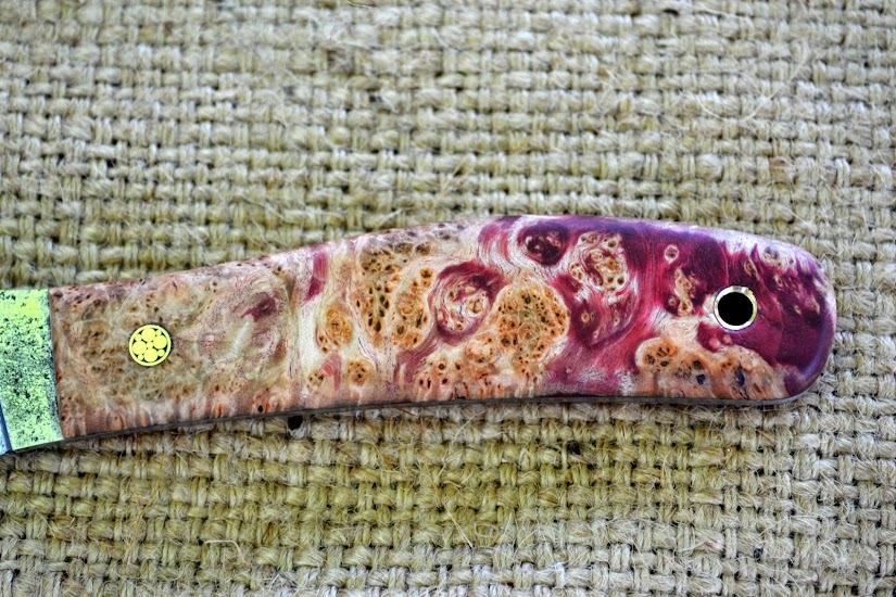 Na okładzinach barwiona i stabilizowana czeczota robinii akacjowej oraz pin mozaikowy.