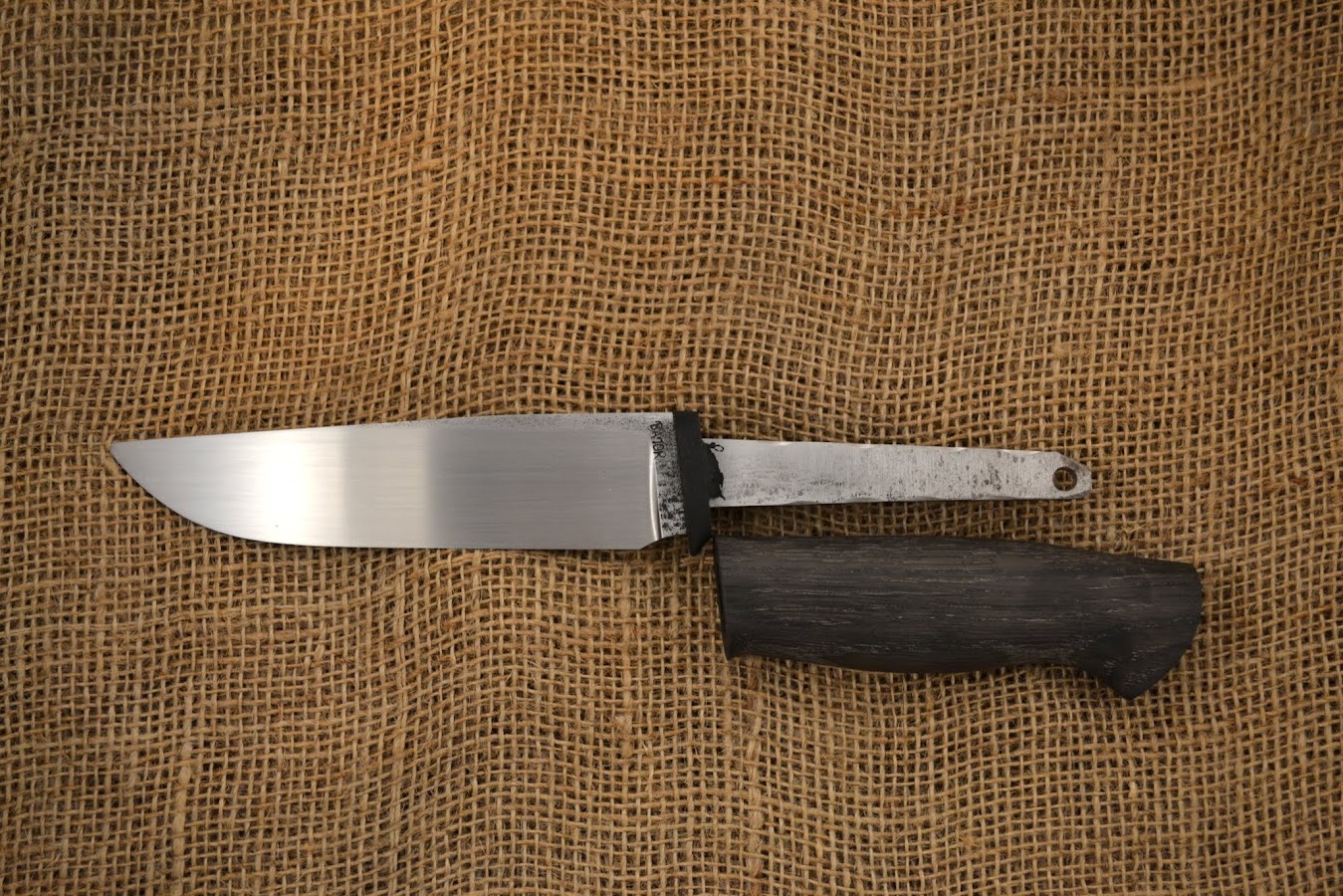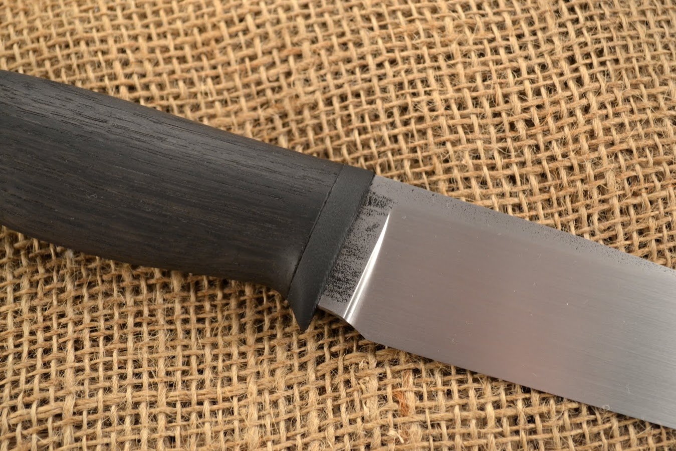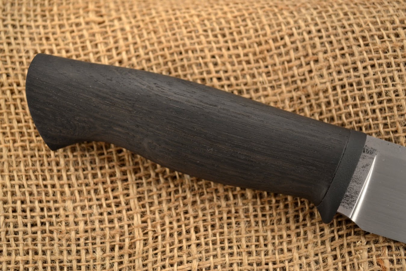 Przejście pomiędzy piaskowaną gardą z czarnego g10 a szlifowaną częścią drewnianą, zostało wykonane z pełną premedytacją.